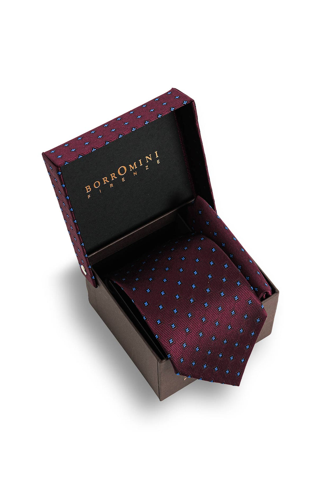 Men's pure silk tie with matching pocket square, presented in an elegant Borromini Firenze box....