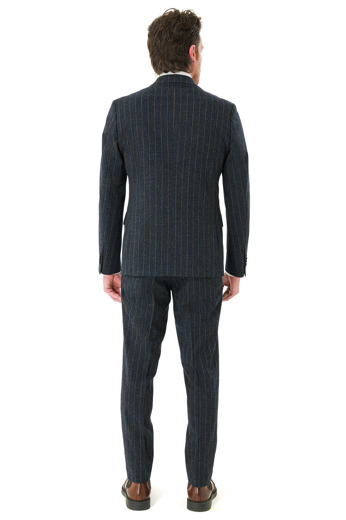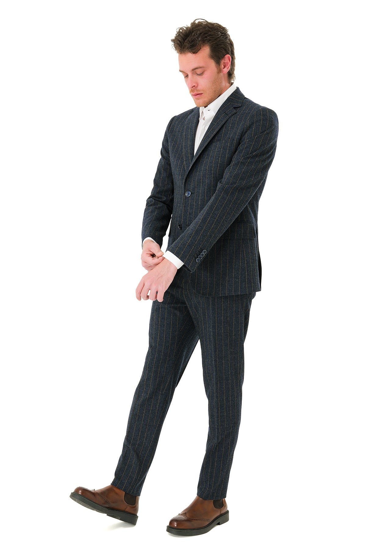 Refined and modern, this drop 7 suit combines sartorial elegance and contemporary practicality. The fitted yet comfortable silhouette is enhanced by the two-button design with notched lapels and flap pockets. The double back opening ensures freedom of movement and a flawless fit. The blended fabric, chosen for its durability and flexibility, effortlessly accompanies every day, making this suit perfect for both business and formal events.