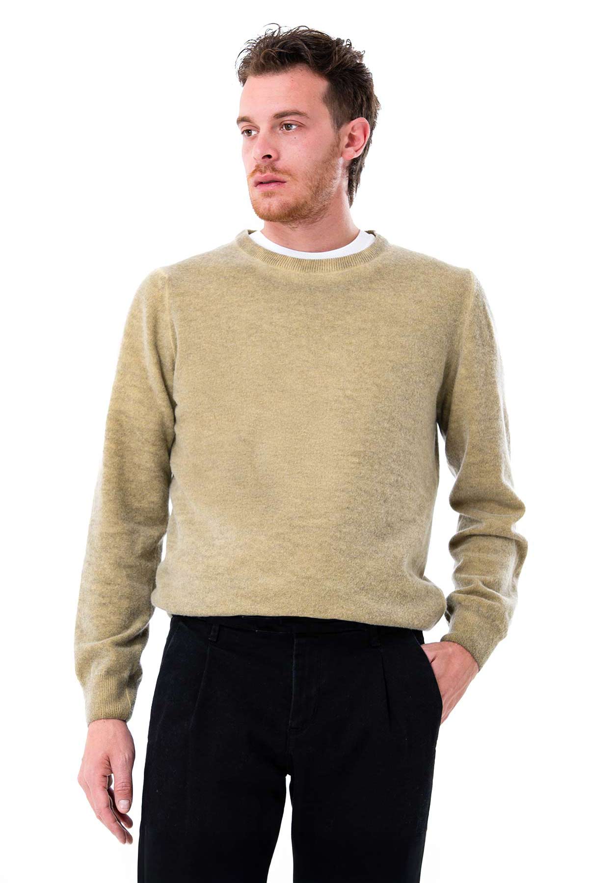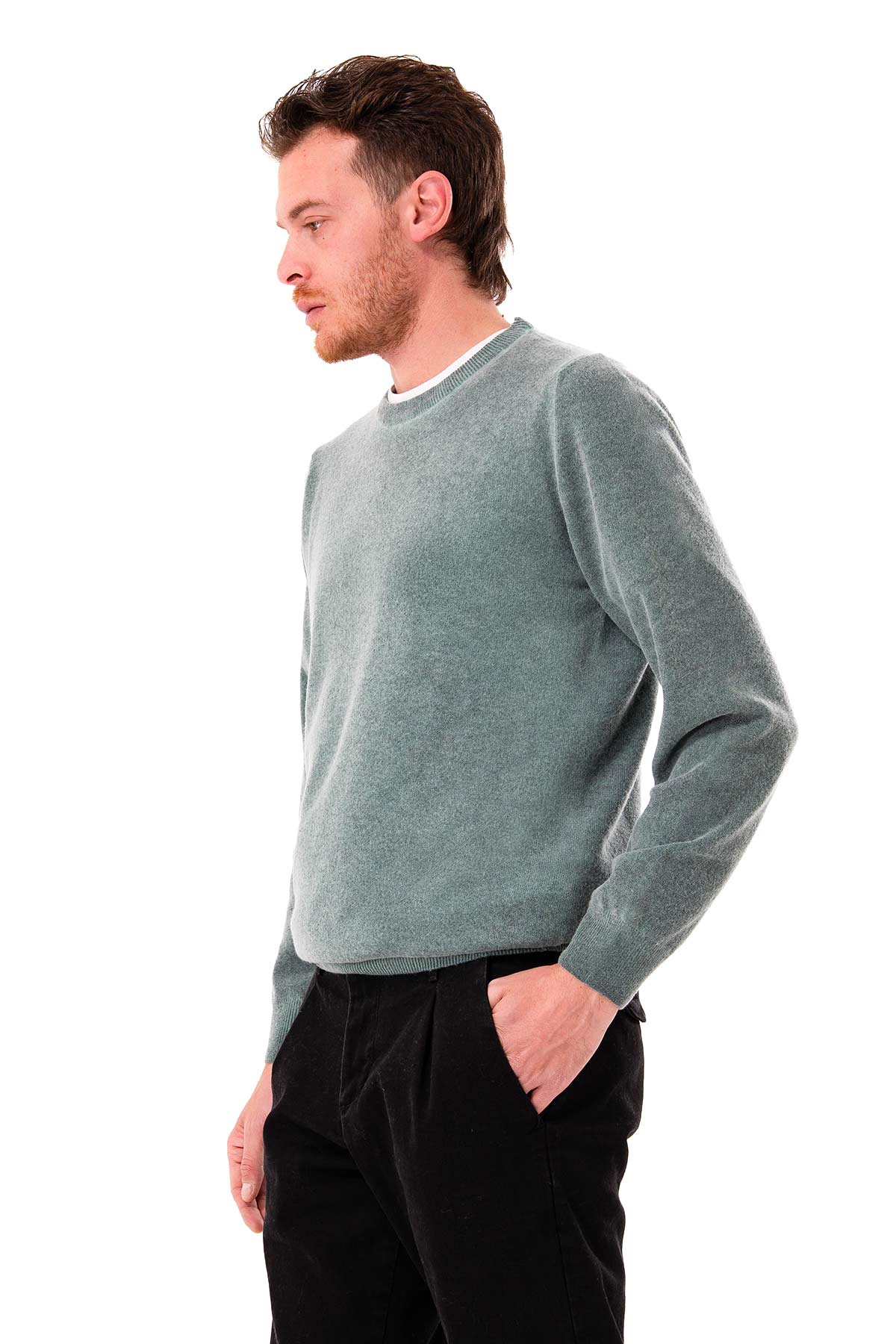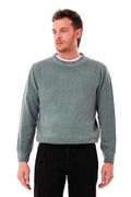 A bold crewneck sweater crafted using the "cold dye" technique, giving the surface a unique, slightly nuanced color effect. The warm, soft wool blend yarn ensures comfort and breathability on cooler days. The streamlined design and ribbed edges complete a perfect piece for a refined, timeless casual style.