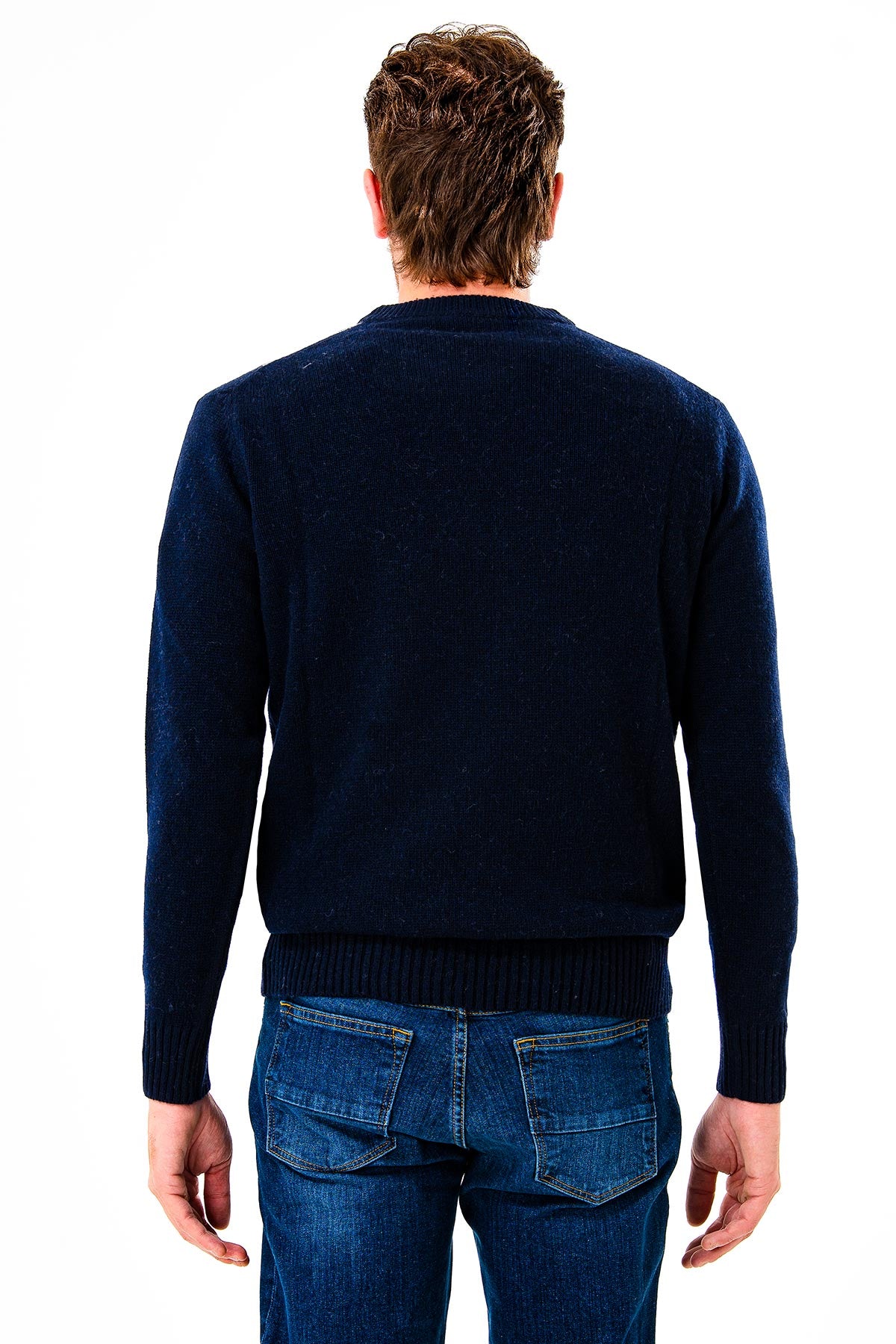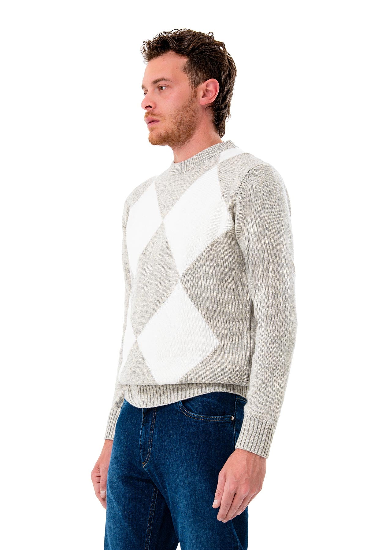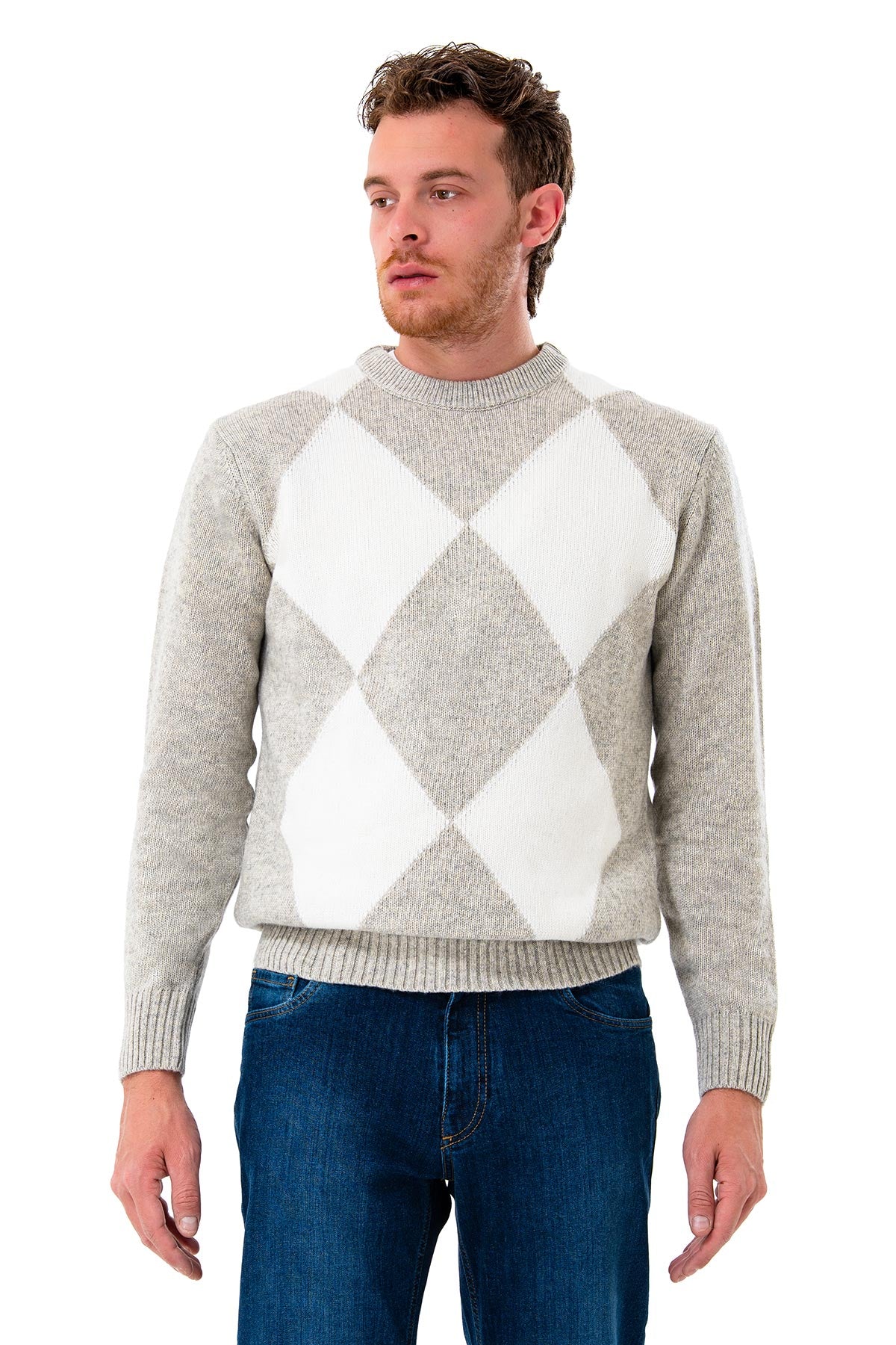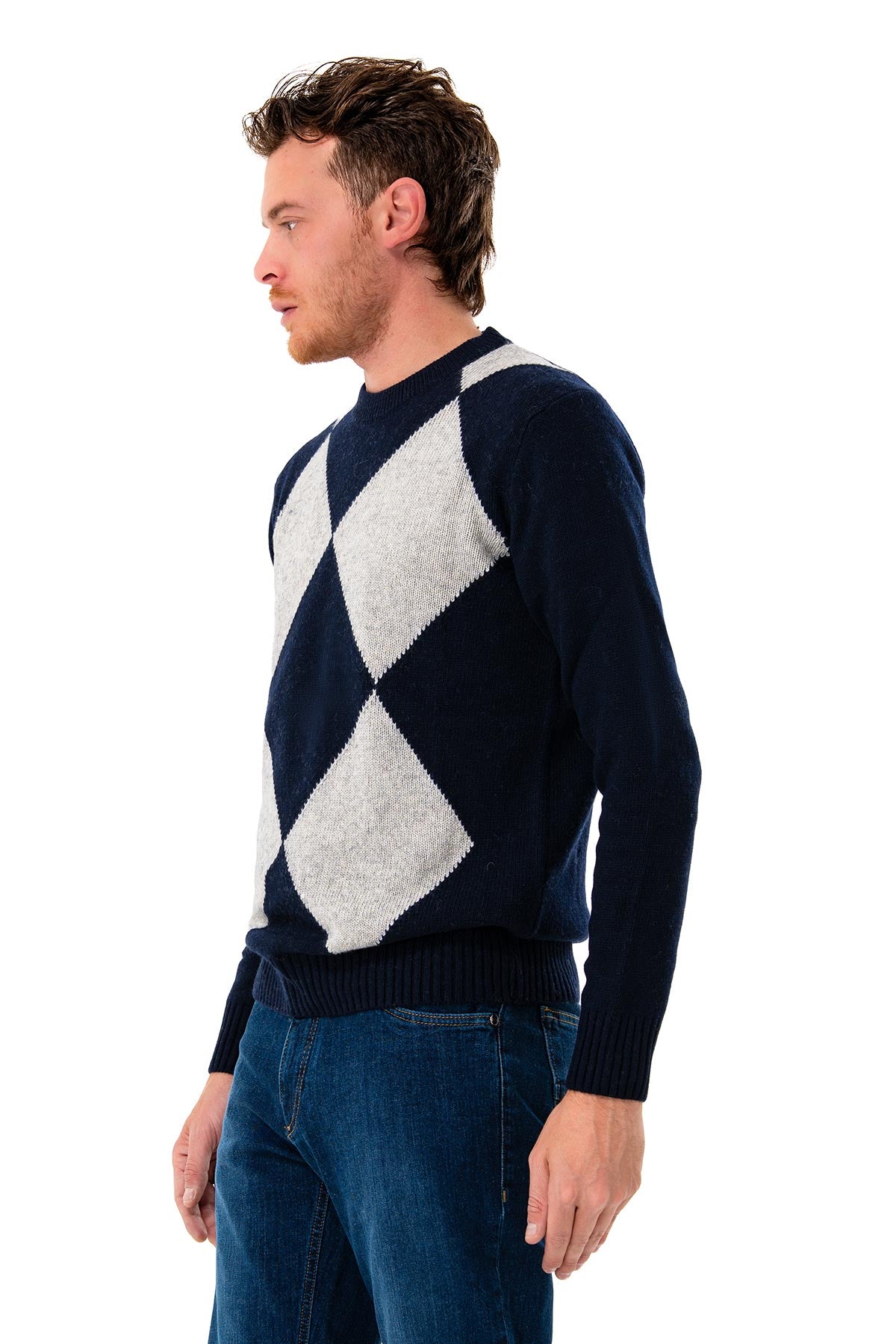 Crew neck sweater with diamond pattern