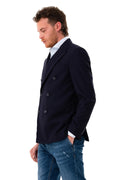 Double-breasted jacket with peak lapels and patch pockets, designed for modern, confident elegance. The semi-lined construction ensures lightness and comfort, ideal for a refined yet casual look. Crafted from high-quality fabrics, it combines structure and softness, ensuring an impeccable appearance for every occasion.