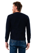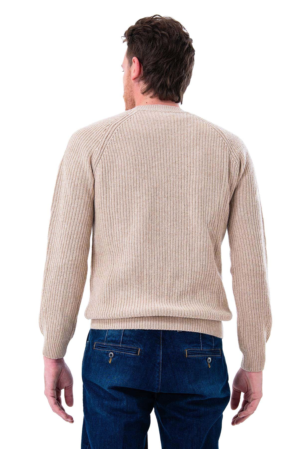 An iconic piece of the men's wardrobe reinterpreted with refined taste. This English-knit sweater combines comfort and character thanks to its full-bodied texture and soft hand. The blend of fine yarns ensures warmth and lightness, while the clean-cut crew neckline makes it extremely versatile, perfect for accompanying your day with effortless elegance.