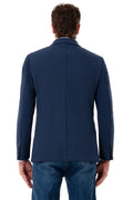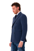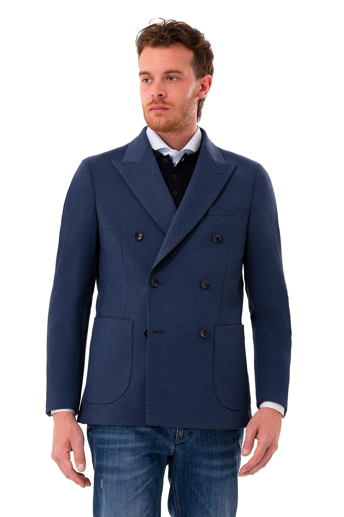 Double-breasted jersey jacket, size 7, with patch pockets and two back vents. The jersey fabric adds softness and practicality, while maintaining the clean, sophisticated look of a double-breasted jacket, perfect for adding personality to both office looks and denim outfits.
