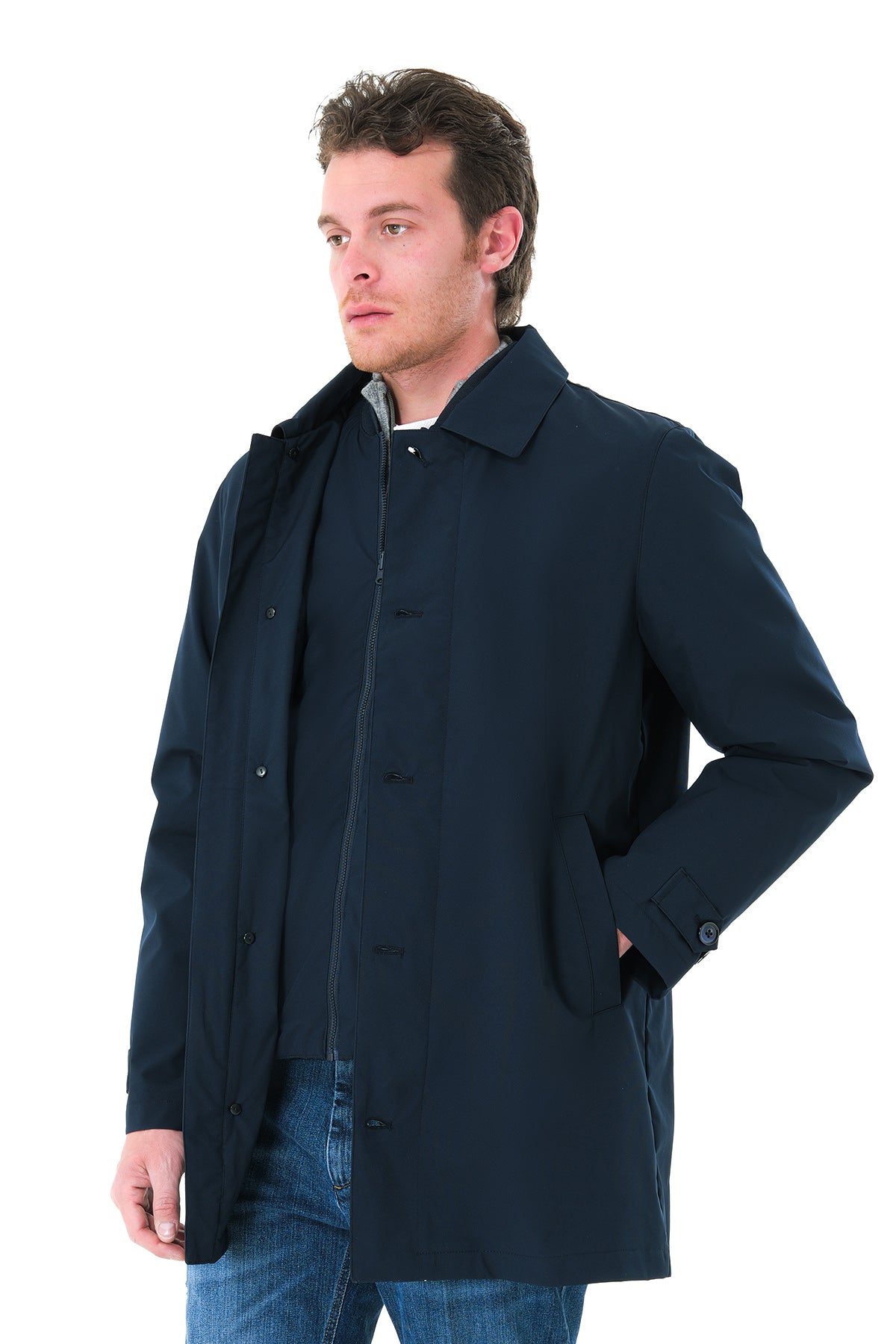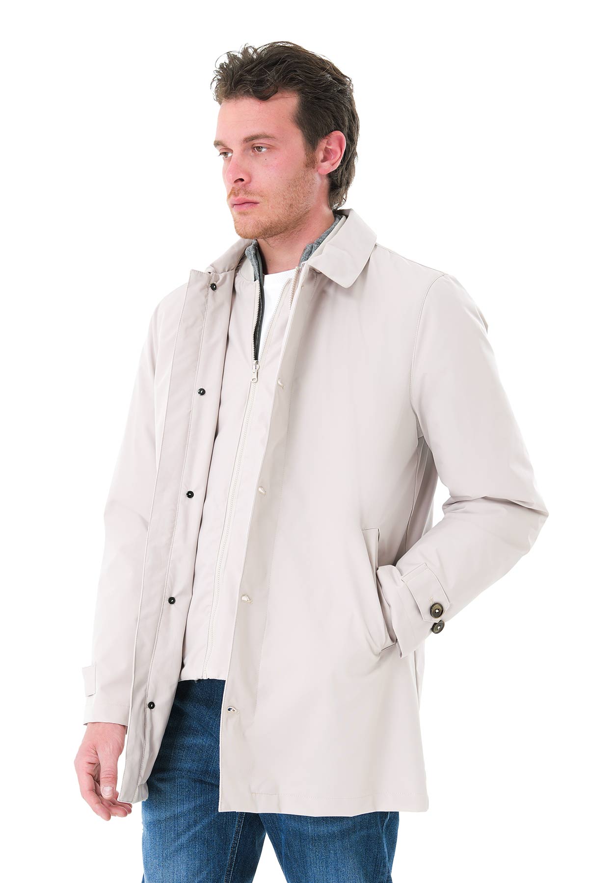 Versatility and style meet in this elegant raincoat, designed to effortlessly tackle any rainy day. The shirt collar adds a classic touch, while the detachable lining allows it to adapt perfectly to varying temperatures, making it an ideal garment for transitional and winter seasons. The clean design, straight fit, and button closure make it a timeless addition to any men's wardrobe. Wear it with formal suits or with a casually chic look, for a refined style that's always on point.