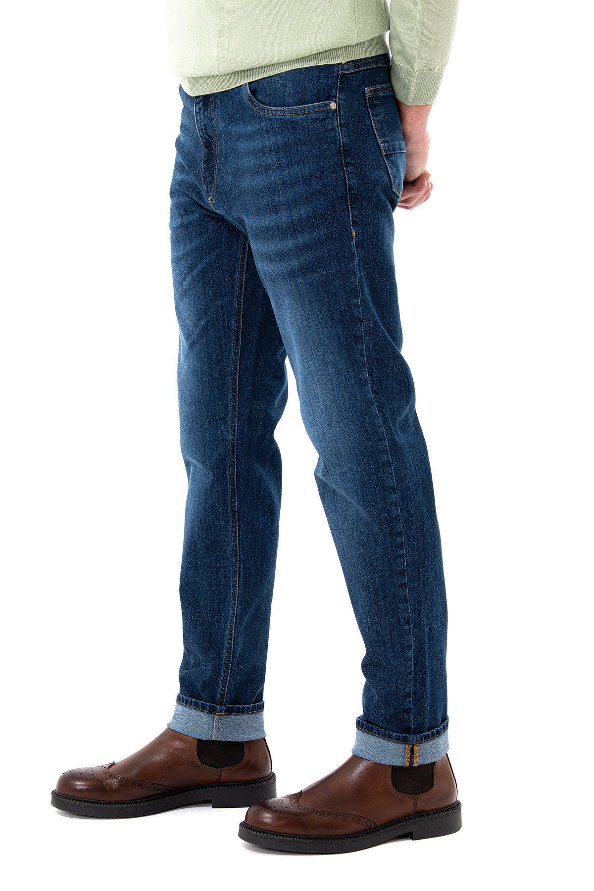 A timeless classic reinterpreted with contemporary flair. These five-pocket jeans combine denim tradition with the brand's signature tailoring. The stretch cotton fabric offers comfort and freedom of movement, while maintaining a clean, modern silhouette. Perfect for the man seeking a simple yet refined style, suitable for any time of day.