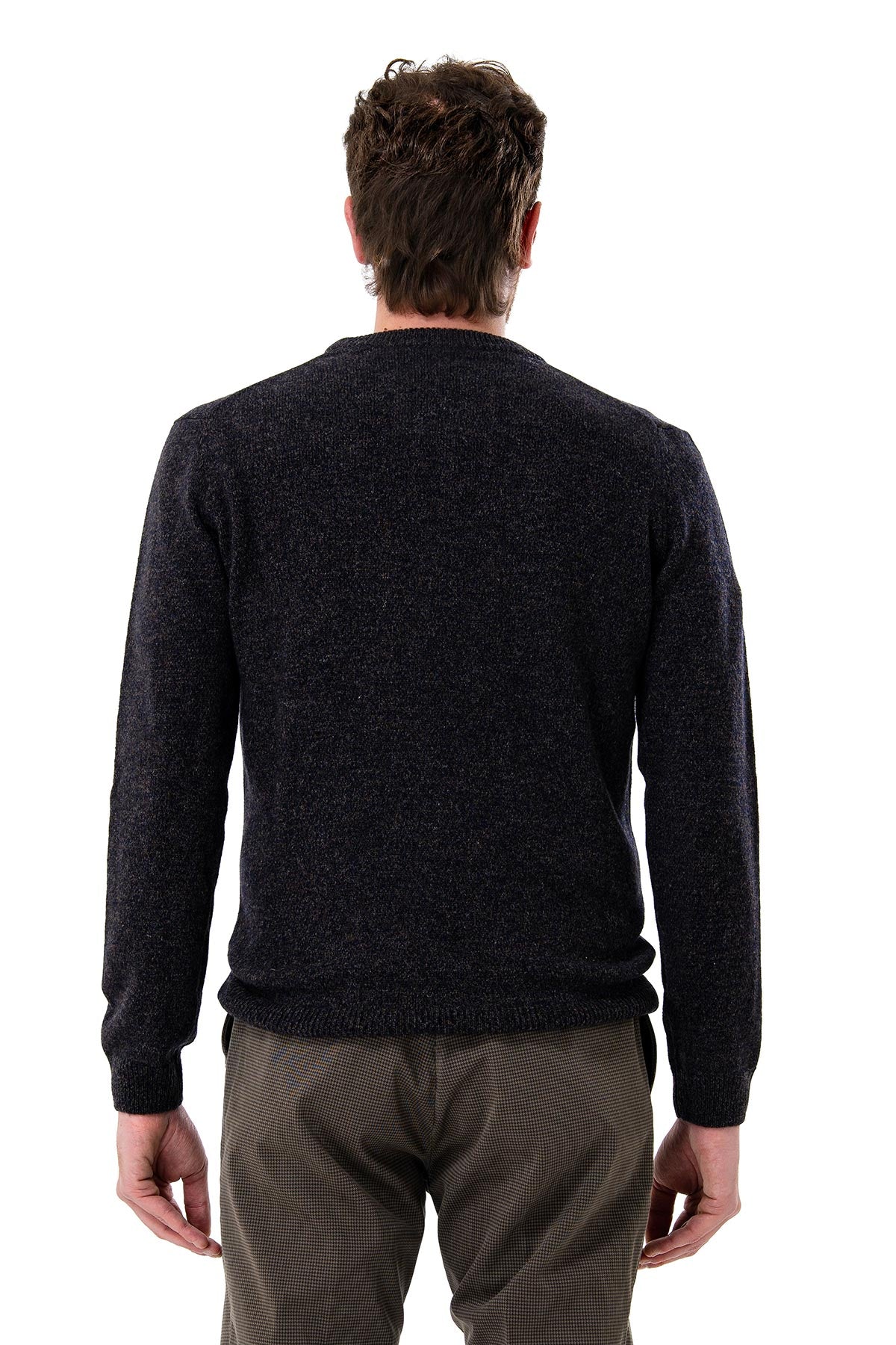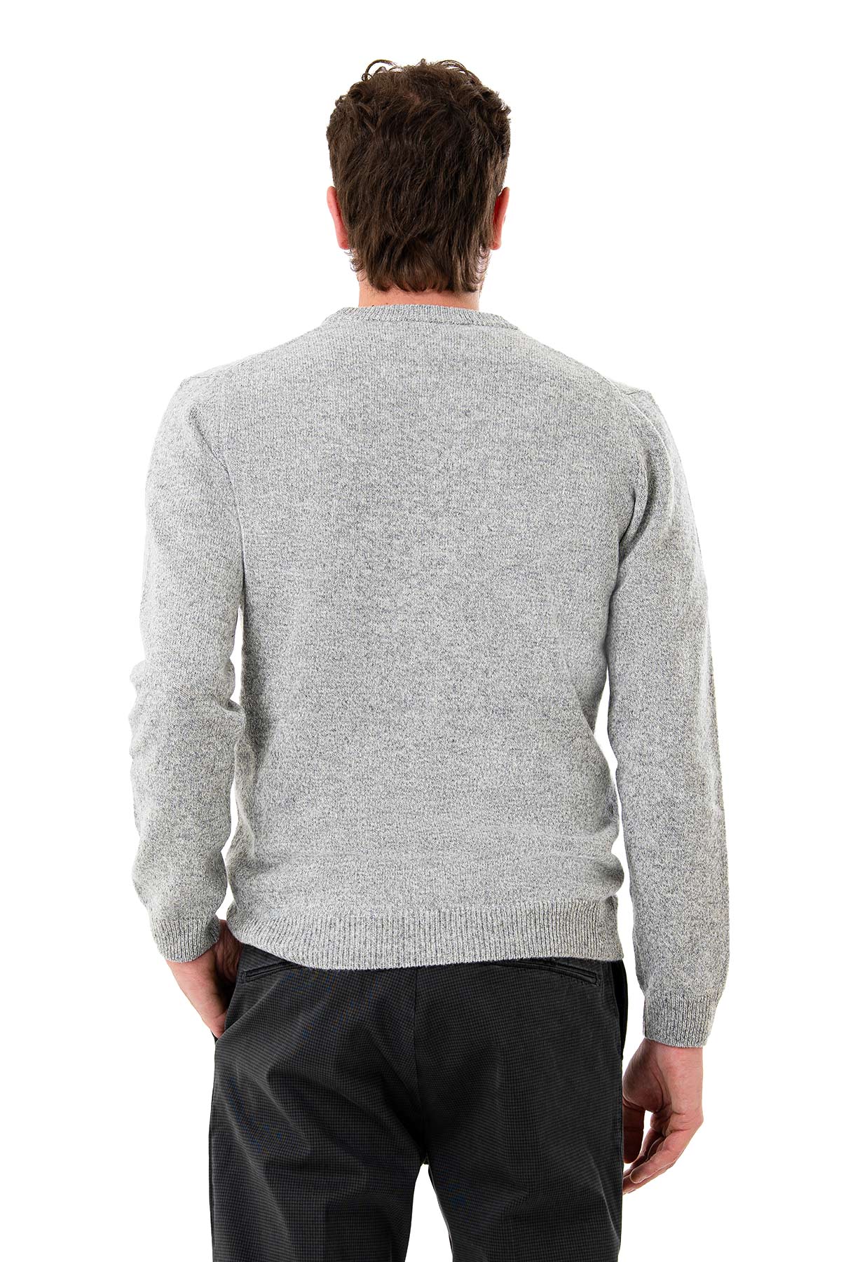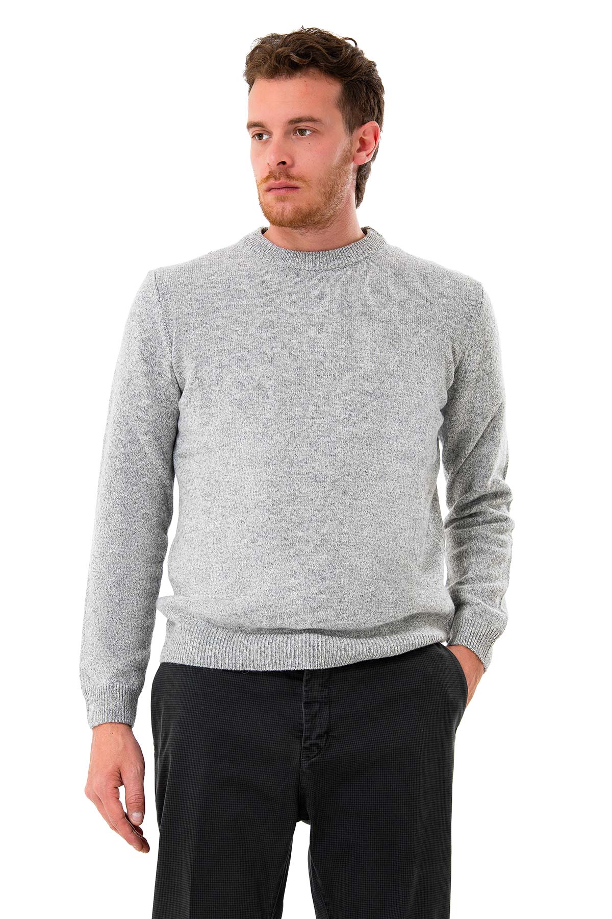Men's sweater with a clean, contemporary design, crafted from mouliné yarn that adds depth and texture. The plain knit with ribbed edges at the collar, cuffs, and hem ensures a comfortable and durable fit. Soft to the touch and durable, this piece is designed to embrace the cold season with style and practicality. Ideal both under a jacket or worn alone, it combines the tradition of knitwear with a modern and versatile feel.