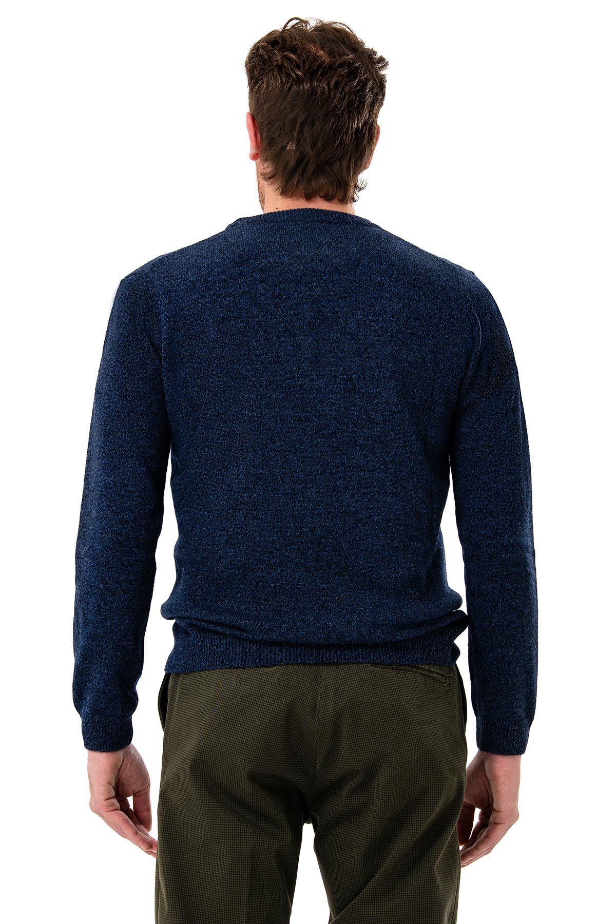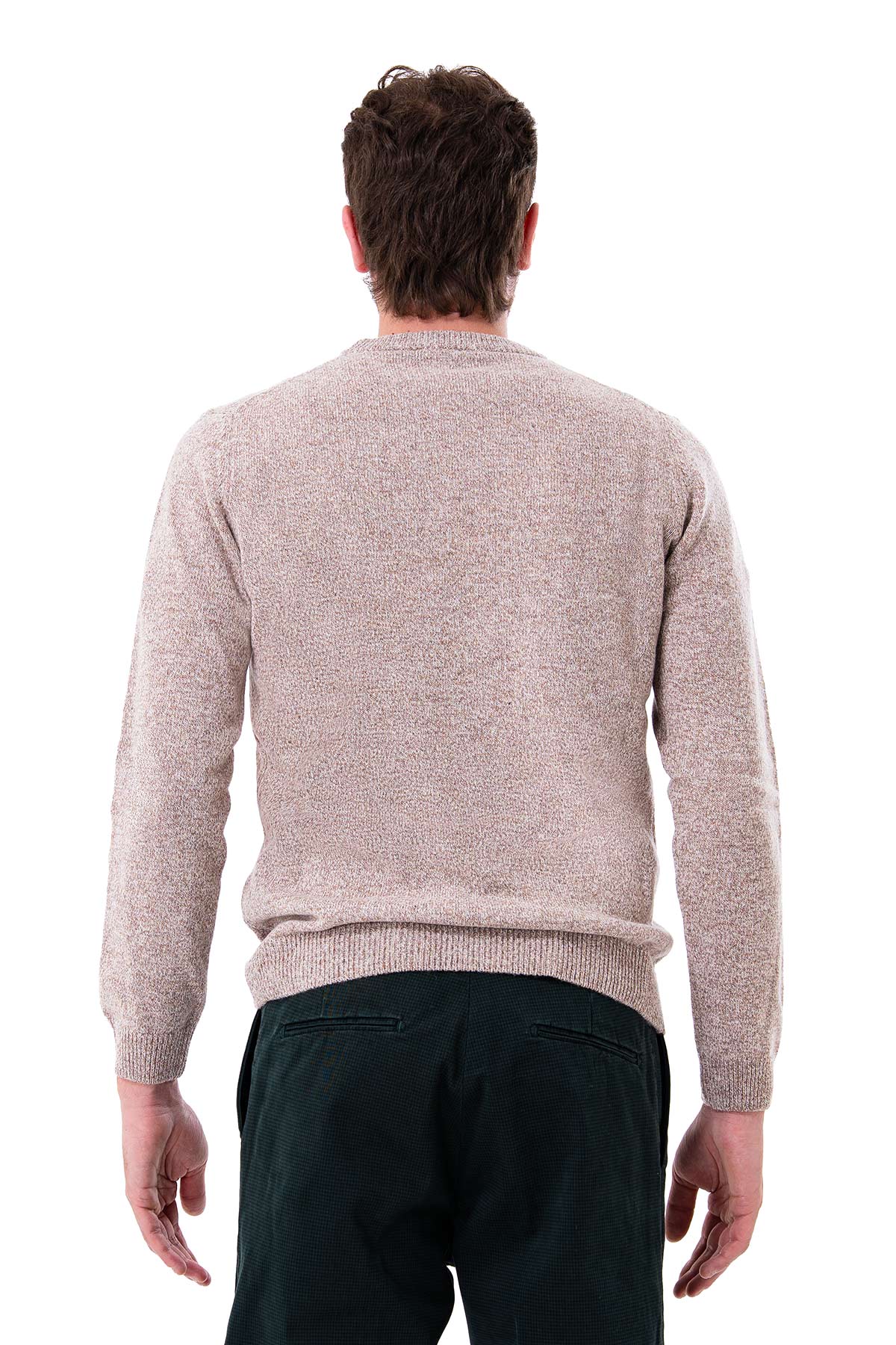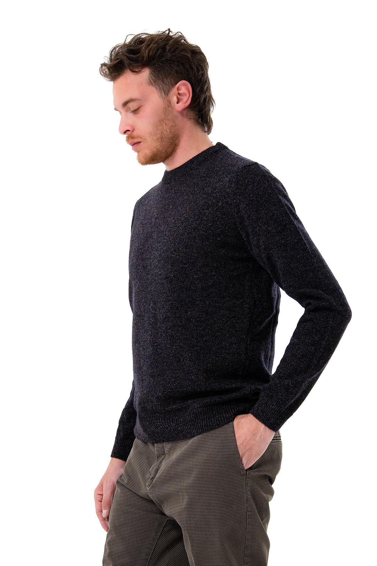 Men's sweater with a clean, contemporary design, crafted from mouliné yarn that adds depth and texture. The plain knit with ribbed edges at the collar, cuffs, and hem ensures a comfortable and durable fit. Soft to the touch and durable, this piece is designed to embrace the cold season with style and practicality. Ideal both under a jacket or worn alone, it combines the tradition of knitwear with a modern and versatile feel.
