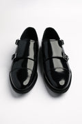 Monk strap doppia fibbia in vernice, un'icona di stile per la cerimonia e le occasioni speciali. La tomaia lucida e la doppia fibbia laterale conferiscono un'eleganza senza tempo, perfetta per completare con classe abiti da sposo o outfit formali. Una scelta audace e distinta per chi ama distinguersi.