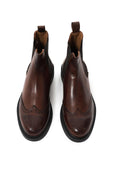 Stivaletto Beatles in pelle dal design classico e intramontabile, realizzato con lavorazione artigianale e dettagli brogue sulla punta. Il taglio pulito e l’inserto elastico laterale assicurano una calzata pratica e confortevole, mentre la suola robusta garantisce stabilità e durata nel tempo. Un modello versatile che coniuga eleganza e praticità, perfetto per la stagione invernale e per look casual raffinati.